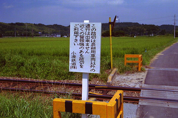小湊鉄道にはこのような警報機も遮断機も無い踏切が多数存在します。 〜2000-07-16上総鶴舞〜上総久保〜
