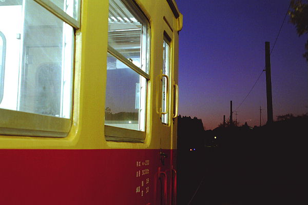 夕陽が車両にかかります。 2000-12-09光風台〜上総山田