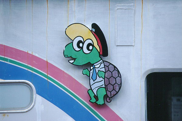 トロッコ車両に取り付けられたマスコット。 2001-04-30郡上八幡