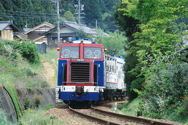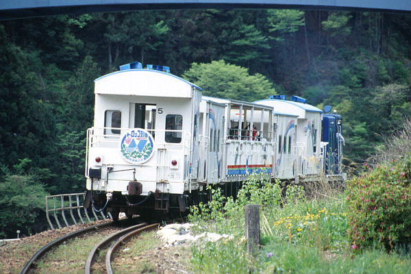 実にゆっくりとしたスピードでトロッコ列車はやって来ます。。 2001-04-30深戸〜相生