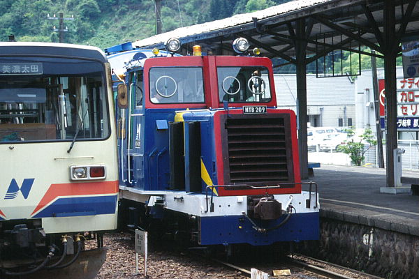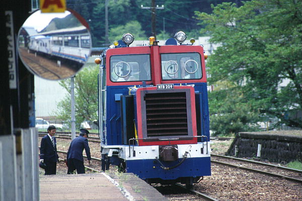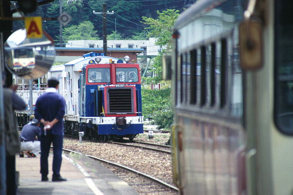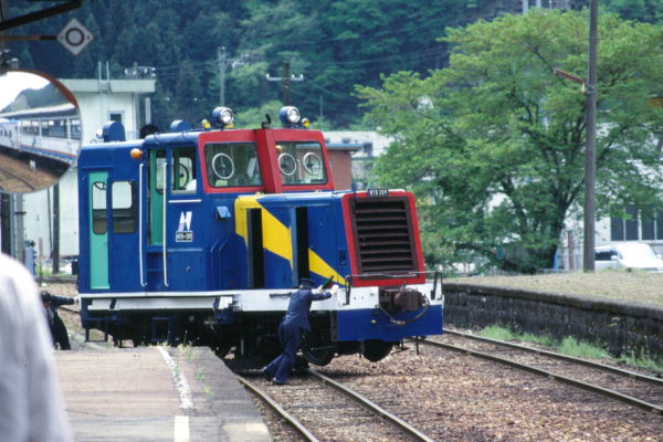終点・郡上八幡に到着したトロッコ列車。 2001-04-30郡上八幡