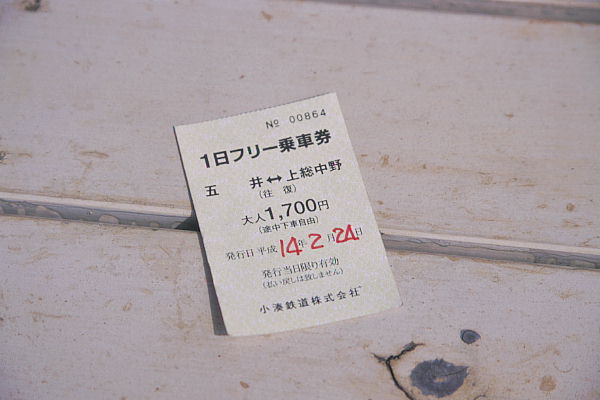 小湊鉄道のフリー乗車券。全ての物語はこの切符を手にしてから始まるのです。
