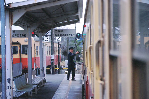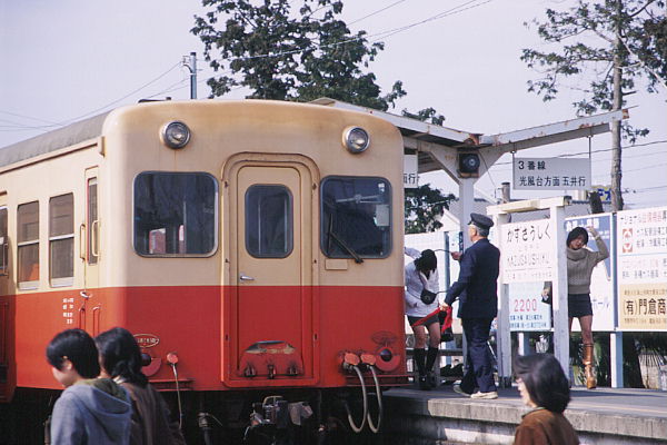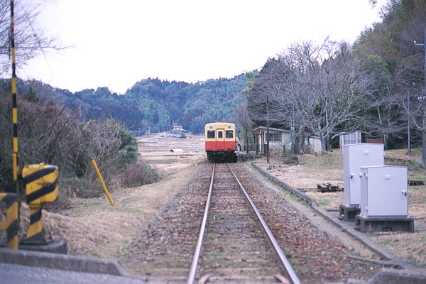 私も下車後ホームから御見送り。 2002-02-24上総大久保