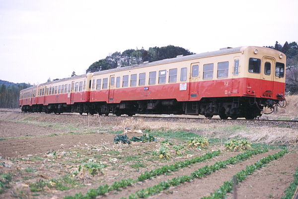 因みに五井方の1両(写真左側)が団体貸切車両です。 2002-02-24上総大久保〜養老渓谷