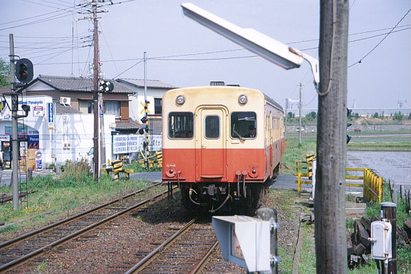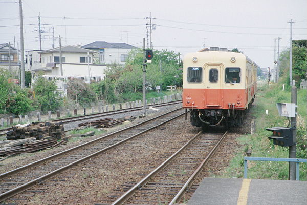 工臨撮影後上総村上駅へ。ツツジの花が良い彩りです。 2002-04-20上総村上