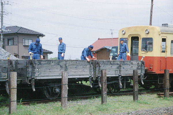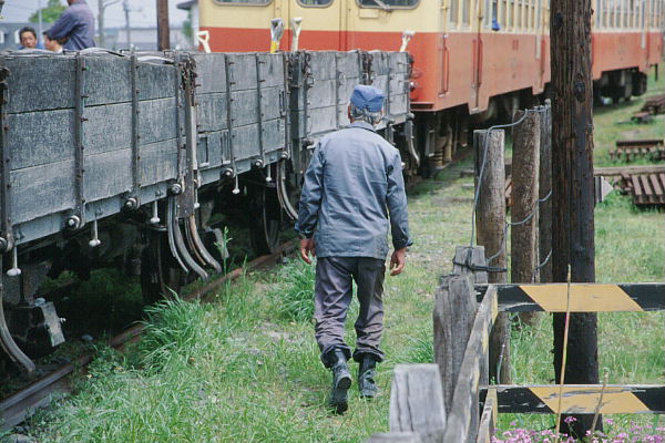 工臨で使われている貨車は木製車体。かなり年季の入った車輌です。 2002-04-20上総山田