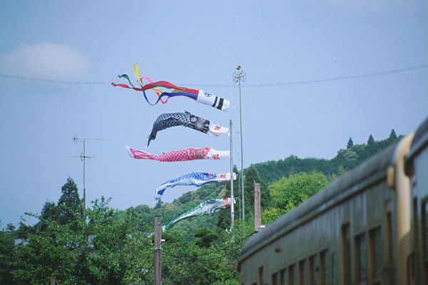 ふと空を見上げると宙を舞う鯉のぼりの姿が見えました。 2002-04-28上総中野