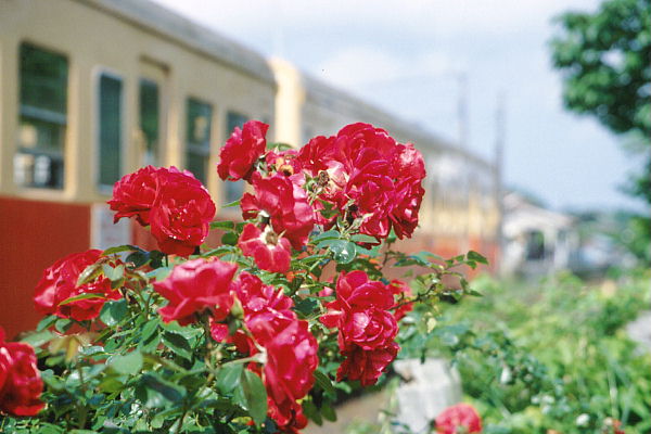線路際に真っ赤な薔薇の花が咲いていました。 2002-05-21上総牛久