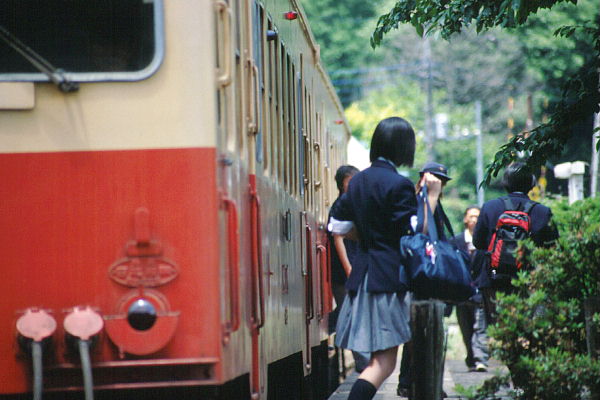 ちょうど中間テストの真っ最中。学校帰りの学生が下車して行きます。 2002-05-21飯給