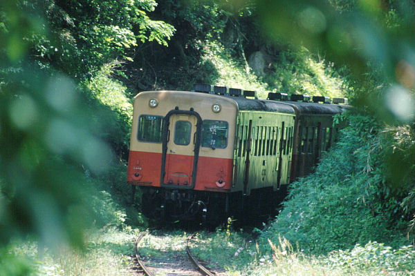 飯給から32レに乗り込み再び移動。切り通しを抜けて列車がやって来ました。 2002-05-21飯給
