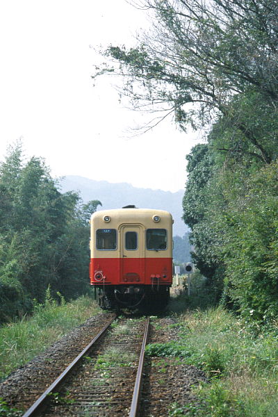 鬱蒼とした森の中を列車が潜り抜けて行きます。 2002-10-06養老渓谷〜上総大久保