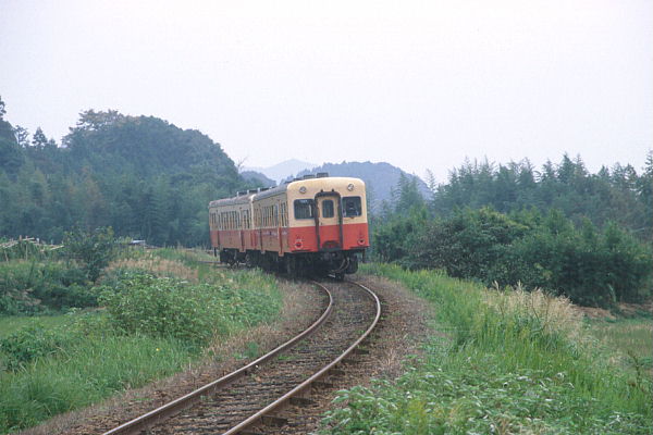 下り坂を列車が駆け下りて行きます。 2002-10-06養老渓谷〜上総大久保