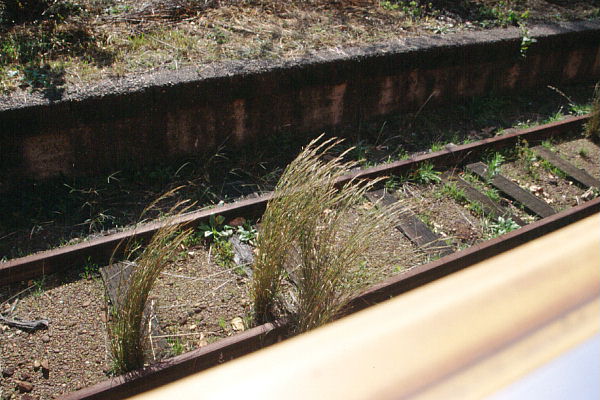 さて日を改めてまたやって来ました。役目を終えた線路には雑草が。 2002-10-12月崎