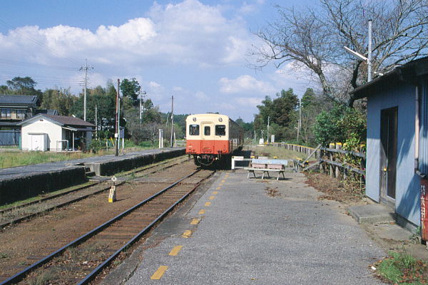 上総三又へ来ました。沿線のススキが秋を感じさせてくれます。 2002-10-12上総三又〜海士有木