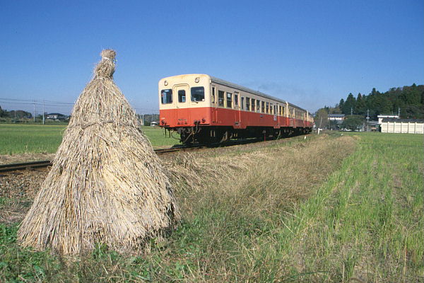 この日はまさに快晴。ツートンカラーの車両がよく映えます。 2002-11-03上総中野